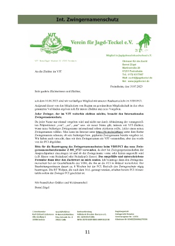 VJT · Bernd Zügel · Martinstr. 29 · 67251 Freinsheim Obmann für die Zucht