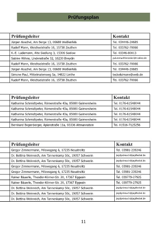 Datum Gruppe Prüfungsort Prüfung Prüfungsleiter Kontakt