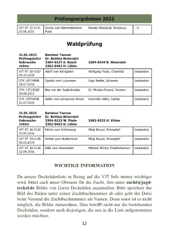 Da unsere Deckrüdenliste in Bezug auf die VJT Info immer wichtiger