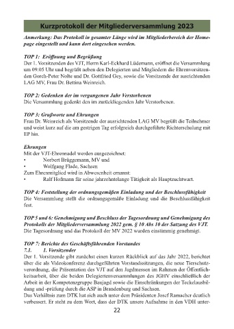 Protokolls der Mitgliederversammlung 2022 gem. § 10 Abs 10 der Satzung des VJT.