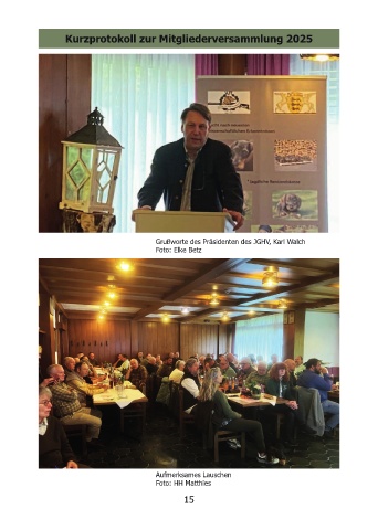 Kurzprotokoll zur Mitgliederversammlung 2025 Grußworte des Präsidenten des JGHV, Karl Walch Foto: Elke Betz Aufmerksames Lauschen Foto: HH Matthies 15