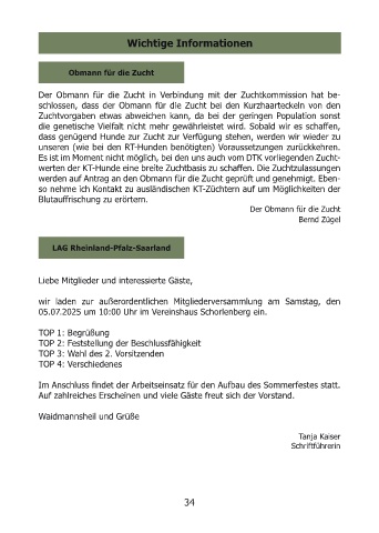 schlossen, dass der Obmann für die Zucht bei den Kurzhaarteckeln von den