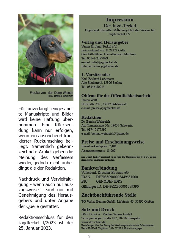 Der „Jagdt-Teckel“ erscheint 4x im Jahr. Für Mitglieder des VJT e.V. ist der