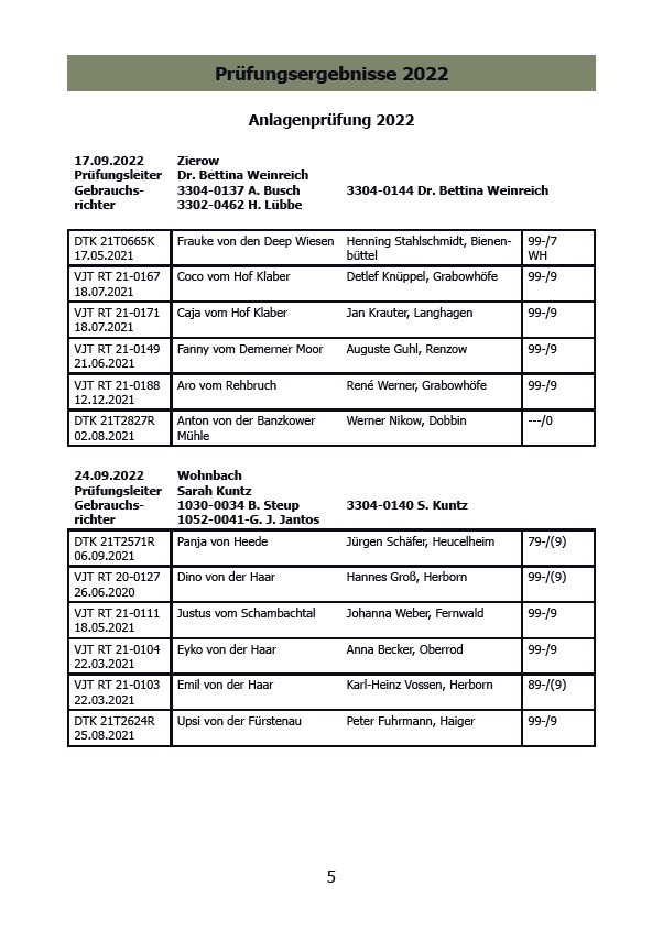 Prüfungsergebnisse 2022