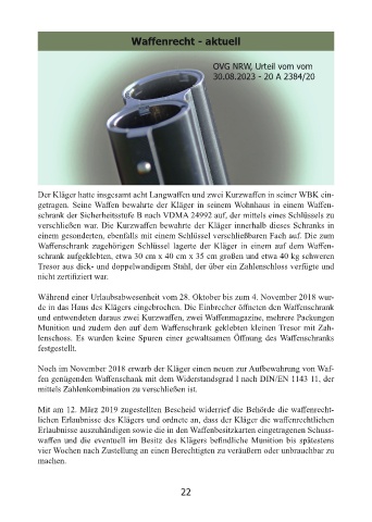 Waffenschrank zugehörigen Schlüssel lagerte der Kläger in einem auf dem Waffen-