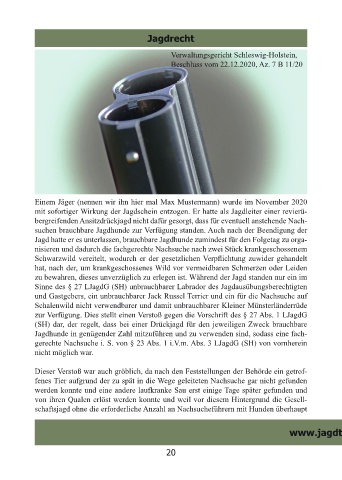 gerechte Nachsuche i. S. von § 23 Abs. 1 i.V.m. Abs. 3 LJagdG (SH) von vornherein