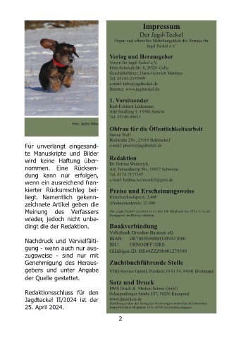 Meinung des Verfassers Der „Jagdt-Teckel“ erscheint 4x im Jahr. Für Mitglieder des VJT e.V. ist der