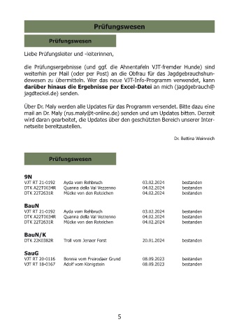 die Prüfungsergebnisse (und ggf. die Ahnentafeln VJT-fremder Hunde) sind