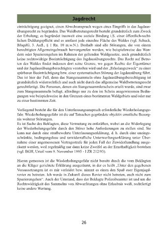 und der Jagdausübungsberechtigten verstoßen wird und der „Erholungszweck“ zu einer